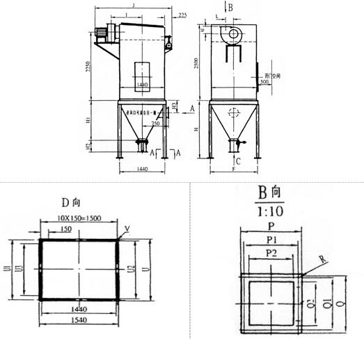 HMC系列脈沖單機(jī)除塵器外形尺寸